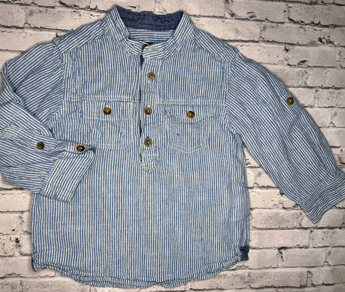 L.O.G.G.: Blue Stripe Button Up - 1.5/2T