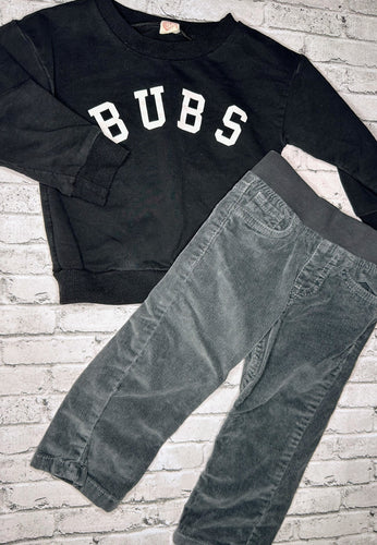 2pc “Bubs” + Gray Corduroy Pants Set- 12m