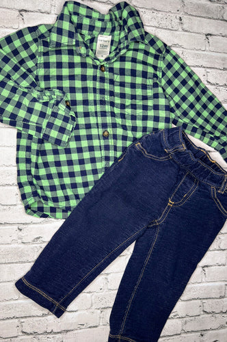 Carter’s: 2pc Green/Navy Plaid Set- 12m