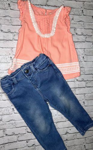 2pc Pink Ruffle + Denim Set- 18m