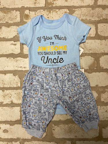 2pc “Bubs” + Gray Corduroy Pants Set- 12m