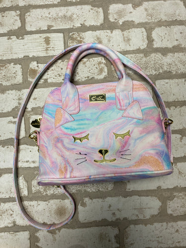 Betsey Johnson Womens Kitten Crossbody Purse Handbag Pink Purple Galaxy