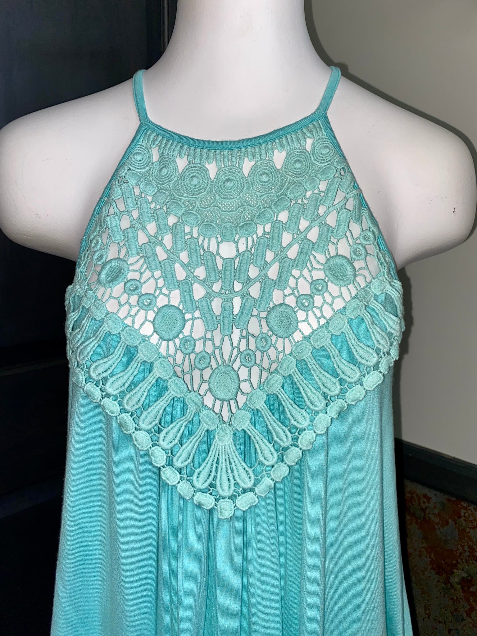 Teal colored crochet detail tank, flowy & flattering fit. Excellent pre-owned condition!